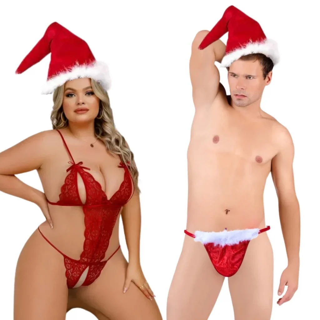 ÜRÜN 1 ADET KADIN BODYSOUİT 1 ADET ERKEK STRİNG VE 2 ADET YILBAŞI ŞAPKASI OLMAK ÜZERE 4 PARÇADAN OLUŞMAKTADIR Yılbaşına özel bu çift konseptli iç giyim setiyle hem siz hem partneriniz gecenin yıldızı olun! Kadınlar için dantel detaylı, cesur kesimiyle dikkat çeken kırmızı bodysouit zarifliğin ve çekiciliğin mükemmel birleşimi. Erkekler için esprili ve baştan çıkarıcı Santa temalı slip ise eğlenceli bir sürprizin habercisi. Yumuşak dokular, elastik yapılar ve şık detaylarla tasarlanan bu özel koleksiyon, romantik anlarınızı unutulmaz kılmak için hazır. Bu yılbaşı aşkı ve tutkuyu birlikte yaşamak isteyen çiftler için ideal bir seçim! Sınırlı stok avantajıyla hemen sepetinize ekleyin, yeni yıla unutulmaz bir başlangıç yapın!