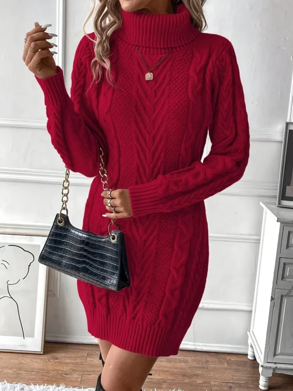 Kadın Balıkçı Yaka Mini Triko Elbise