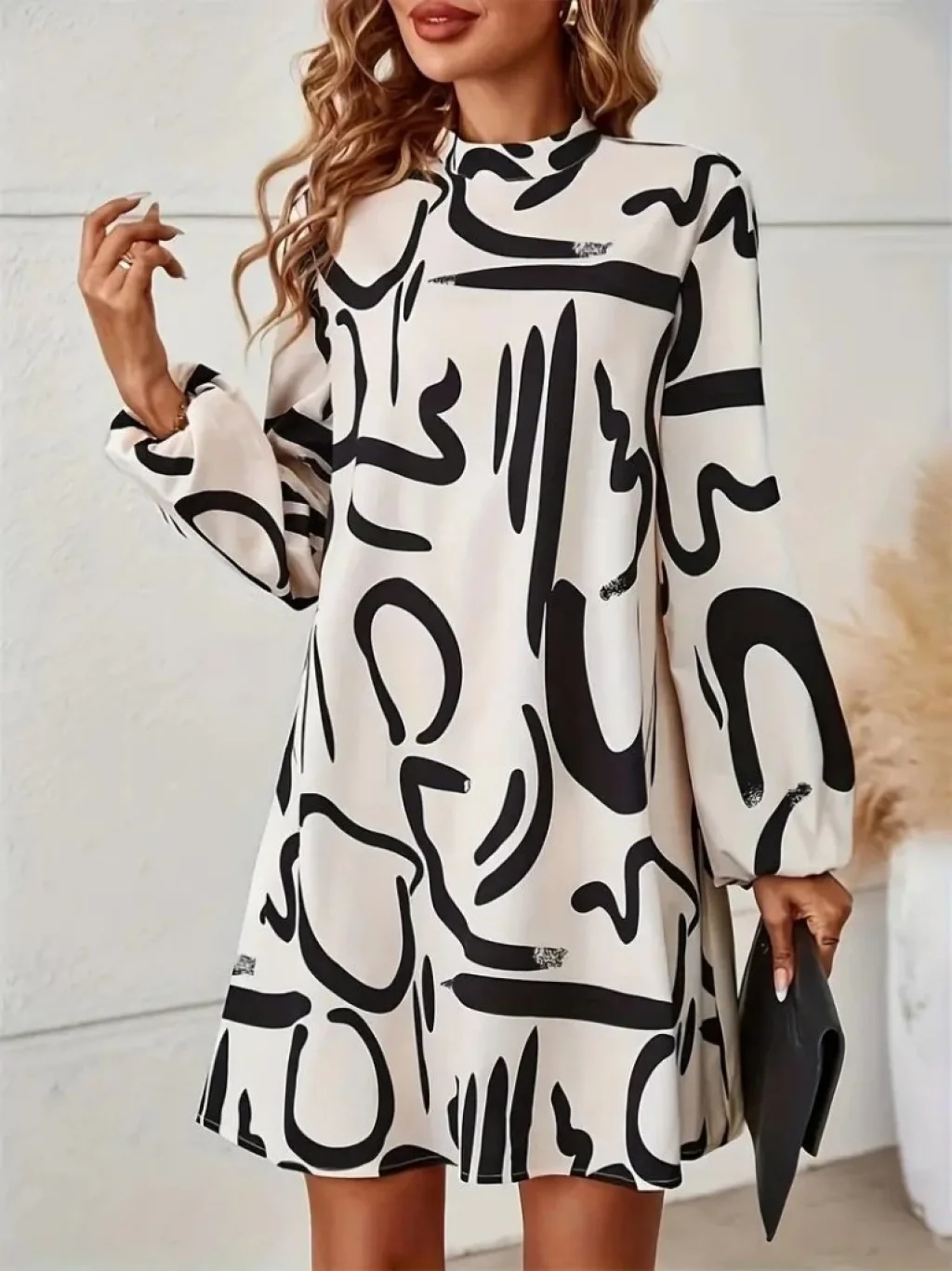 Kadın Uzun Kollu Balıkçı Yaka Desenli şardonlu Dalgıç Elbise