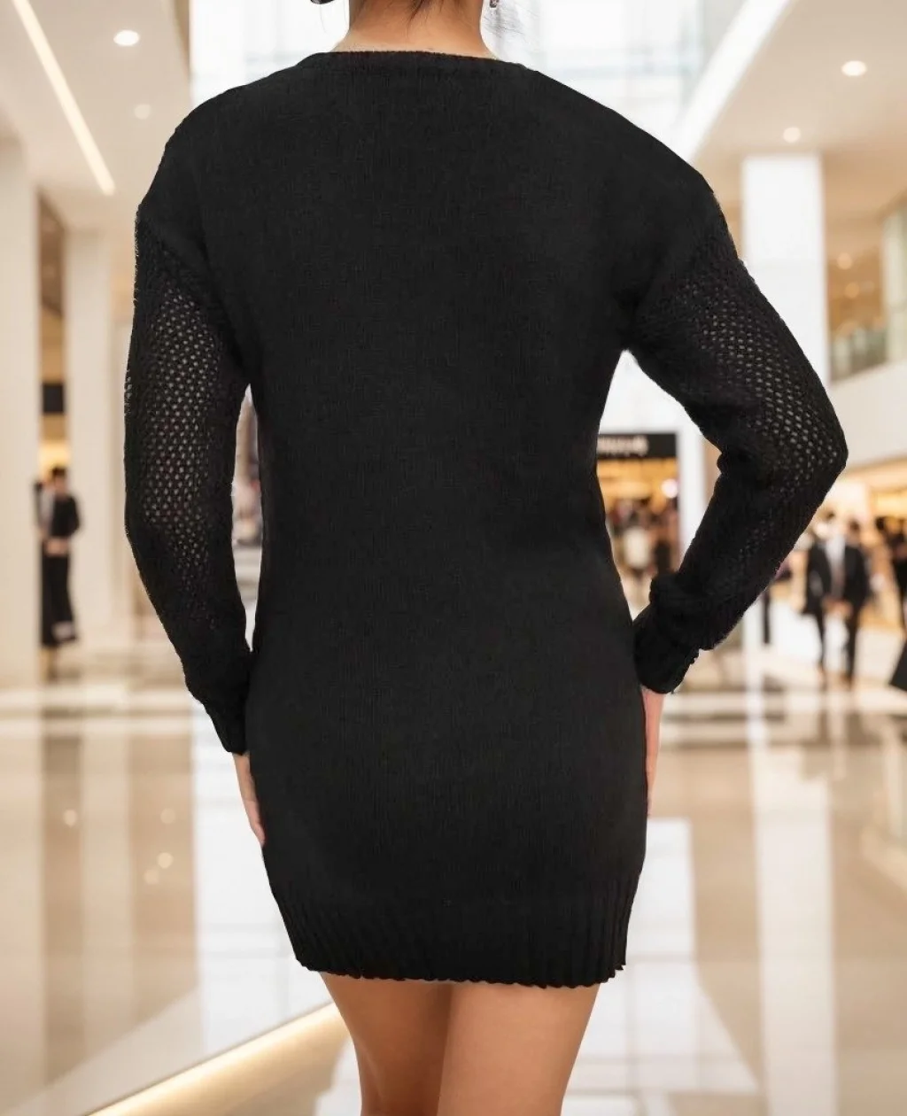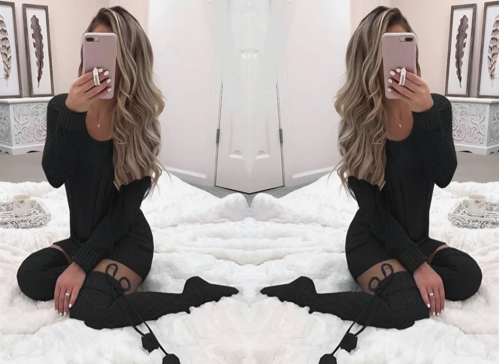 Kadın Uzun Kollu Bisiklet Yaka Triko Elbise (çorapsız)