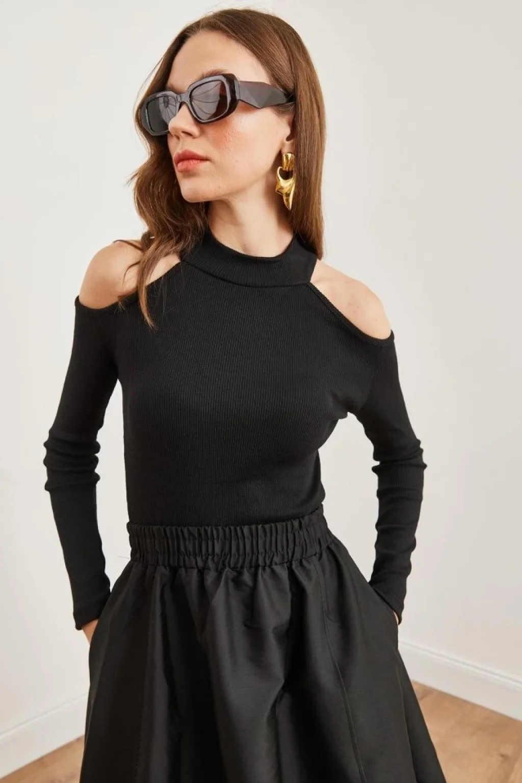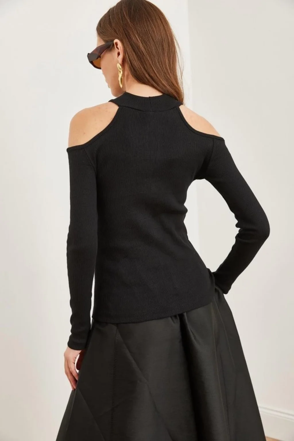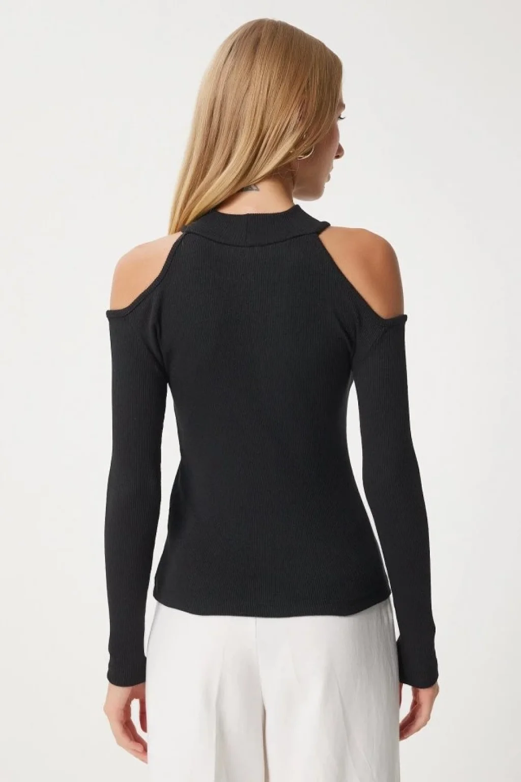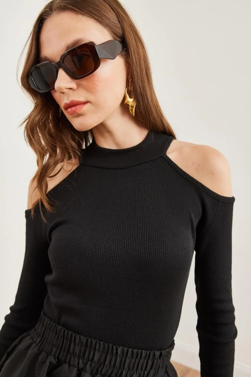 Kadın Uzun Kollu Omuz Dekolteli Kaşkorse Kumaş Bluz