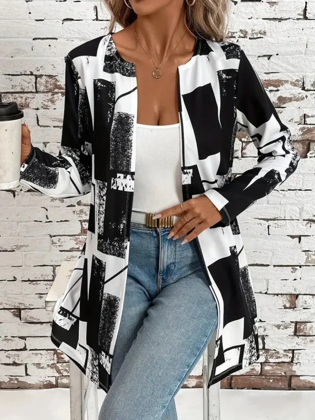 Kadın Uzun Kollu önü Açık Desenli Modal Kısa Ceket