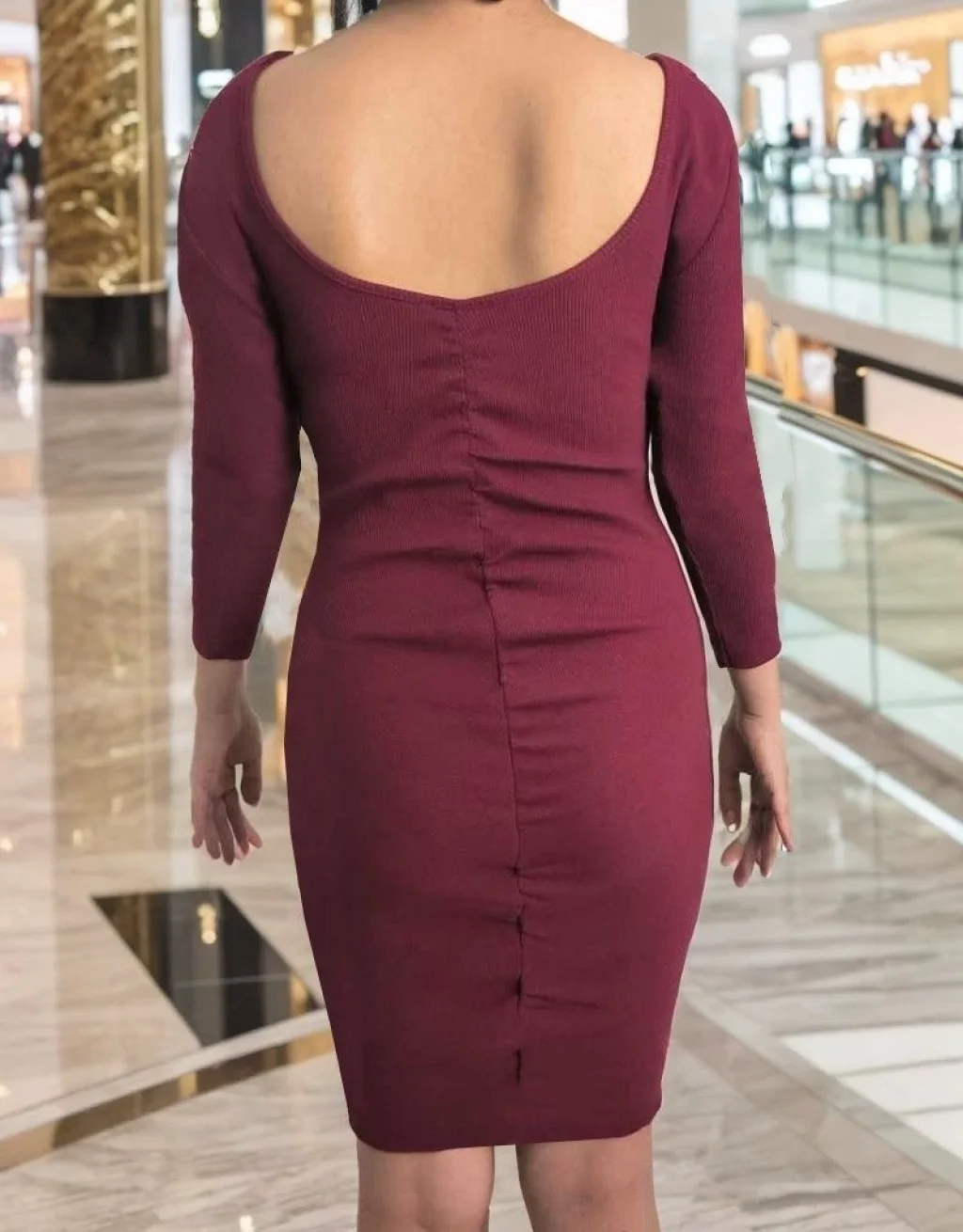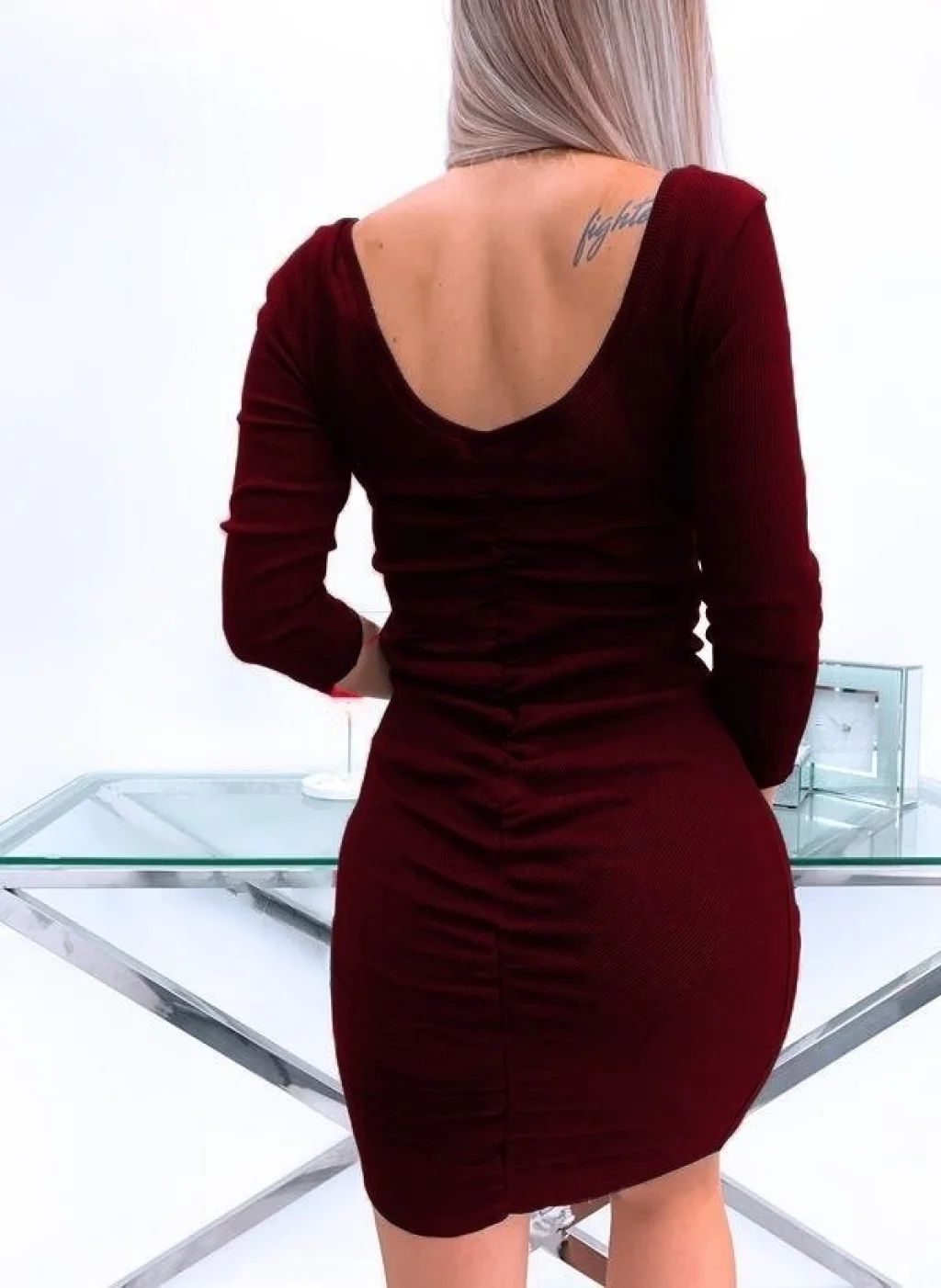 Kadın Uzun Kollu Sırt Büzgü Detay Kaşkorse Elbise
