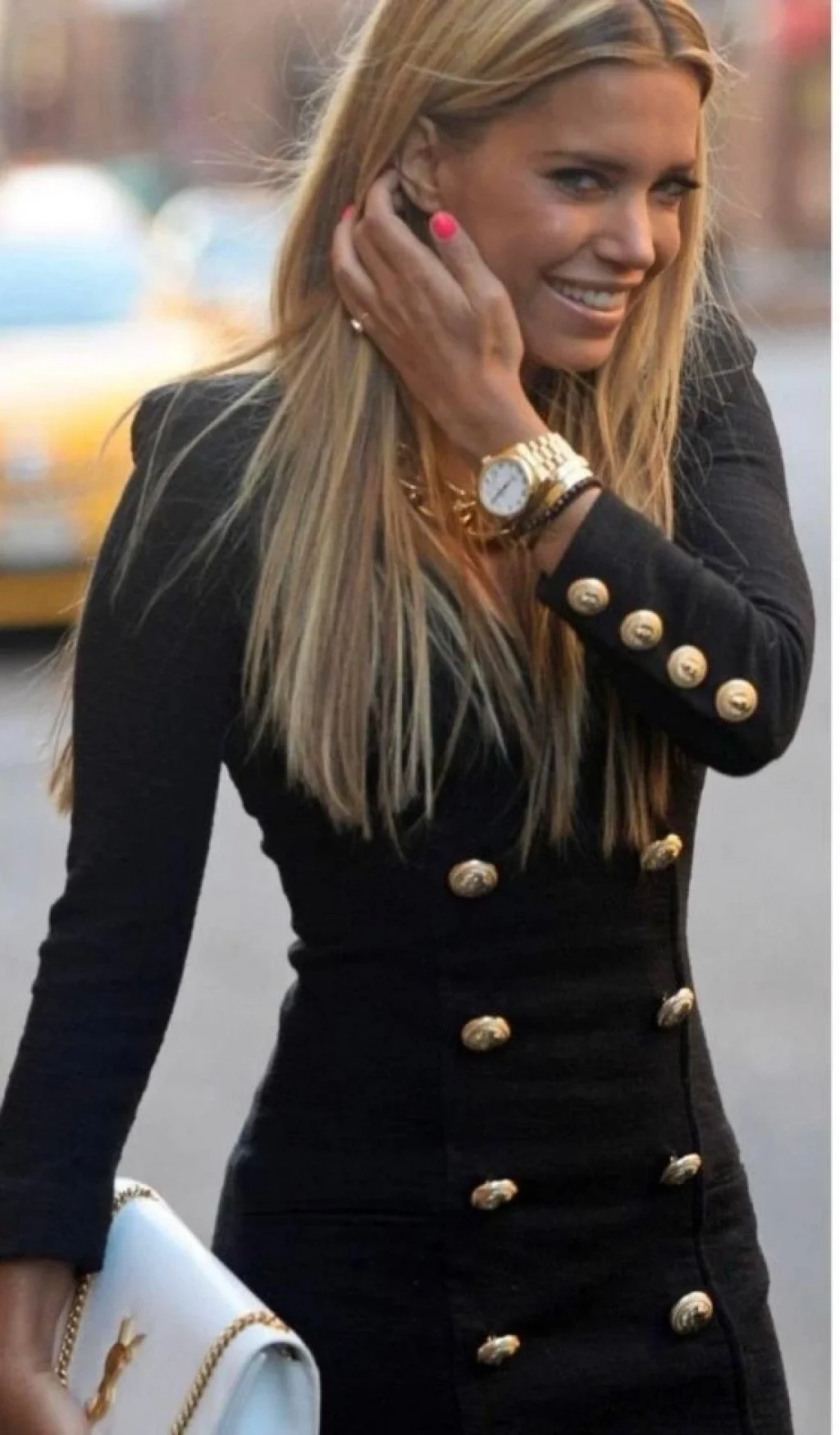Kadın Uzun Kollu V Yaka Düğme Detay Ceket Elbise