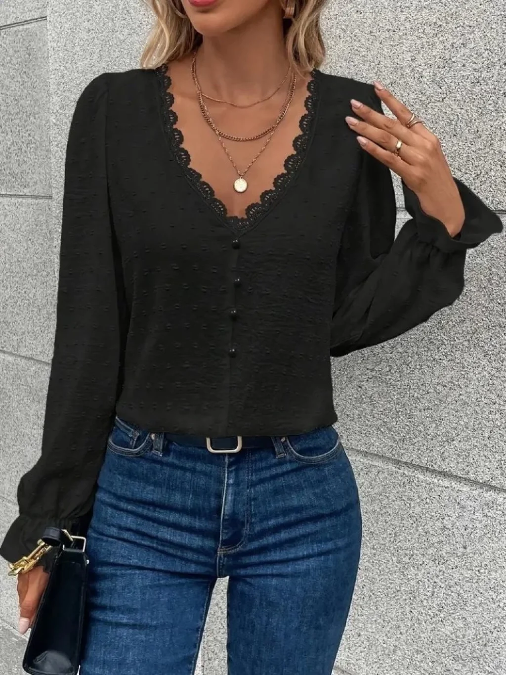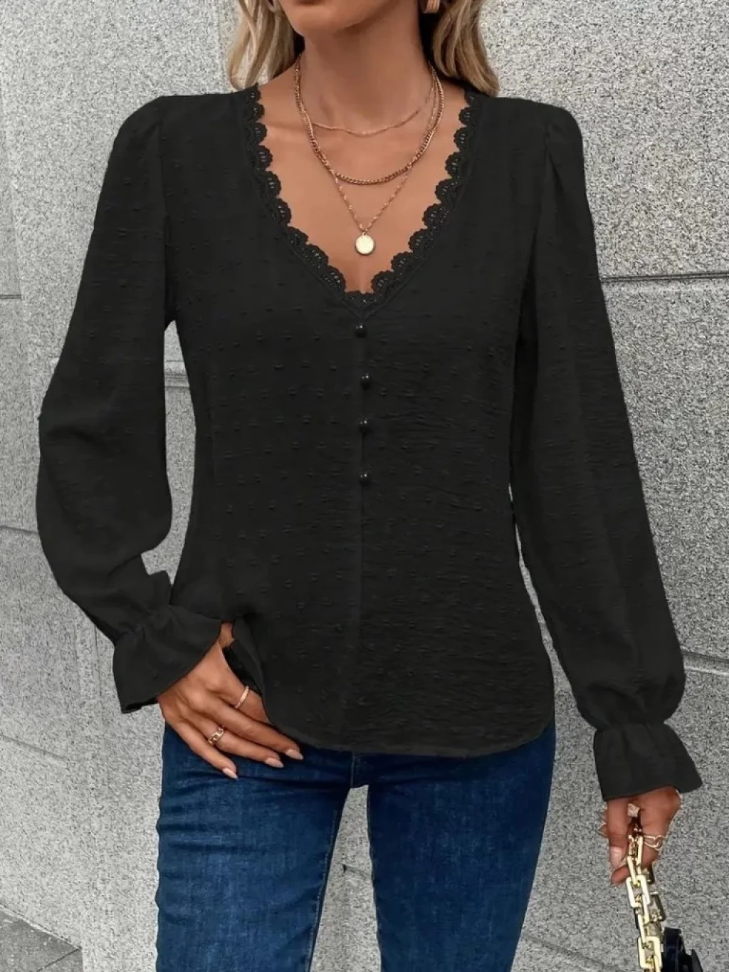 Kadın Uzun Kollu V Yakalı önden Düğmeli Bluz