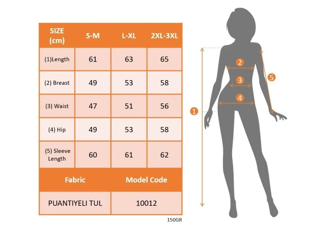 Modelin Ölçüleri: Boy:165, Kg:55, Göğüs:90, Bel:72, Kalça: 100