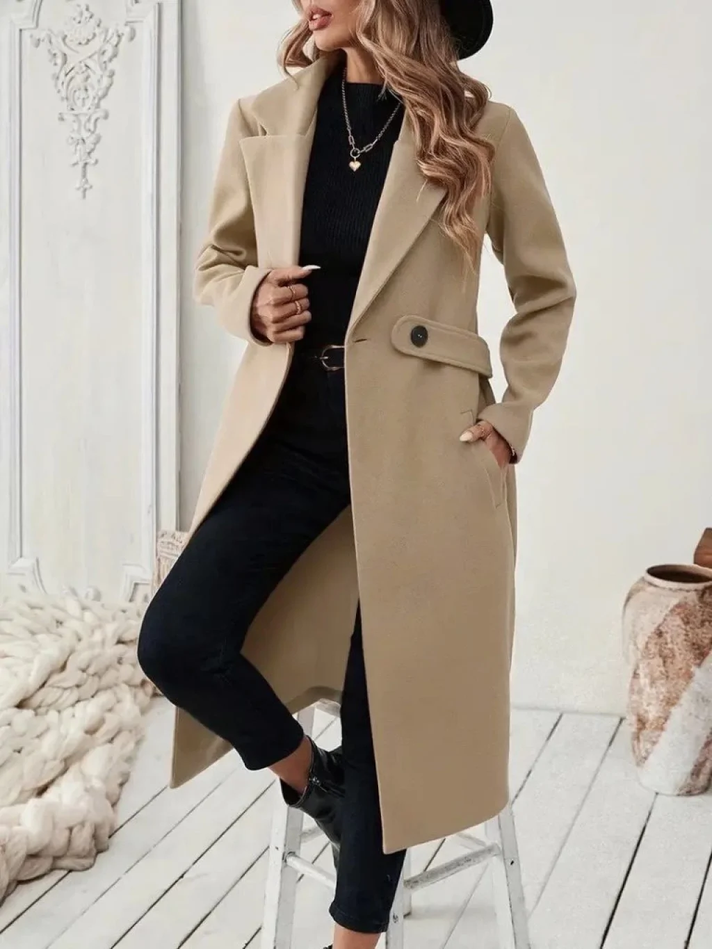 Kadın Uzun Kollu Yakalı Belde şerit Düğme Detaylı Cepli Mini Kaşe Kaban