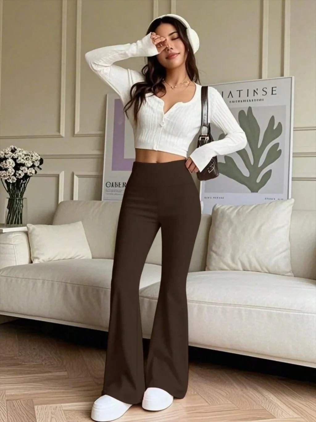 Kadın Yüksek Bel Ispanyol Paçalı Pantolon Tayt