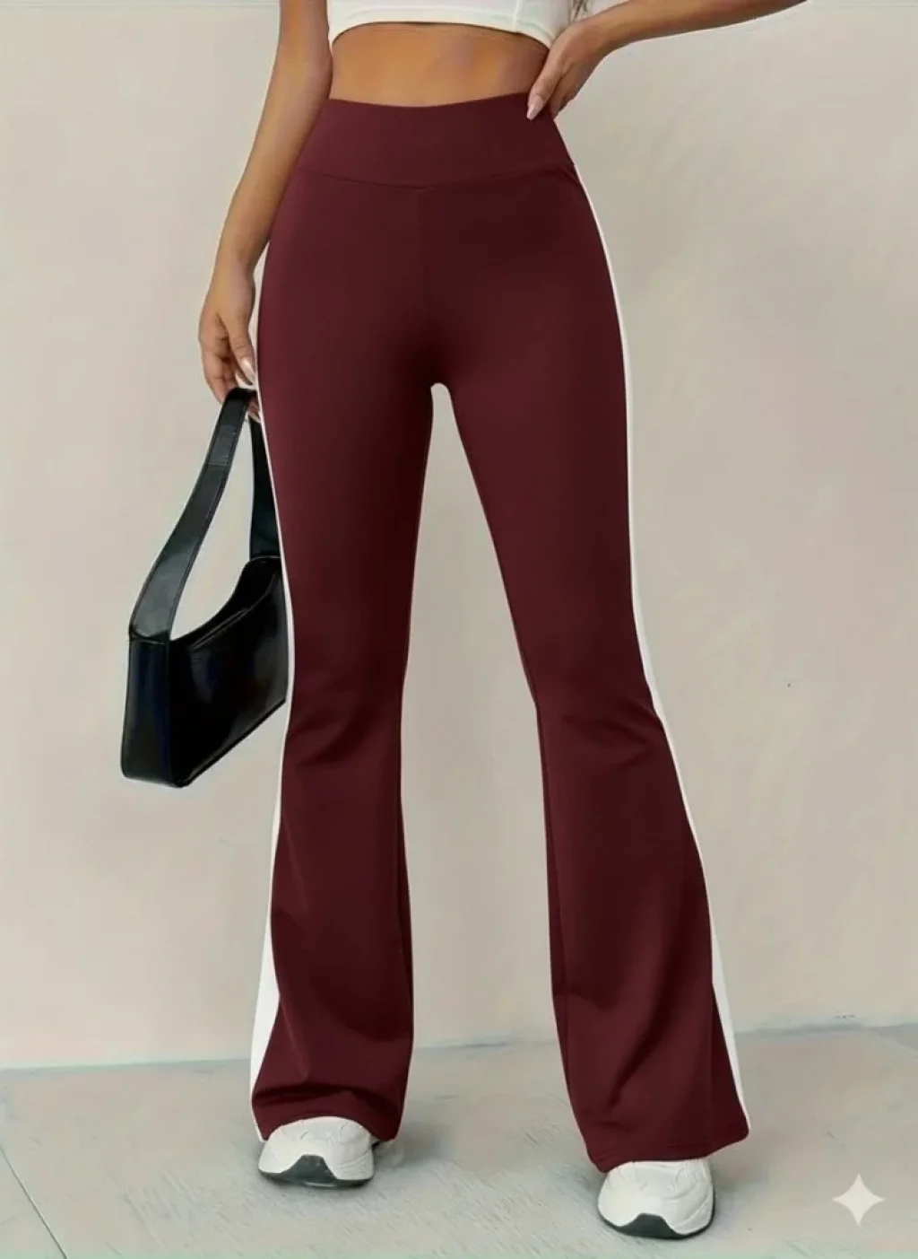 Kadın Yüksek Bel İspanyol Paçalı Yanlardan şerit Detaylı Dalgıç Tayt Pantolon