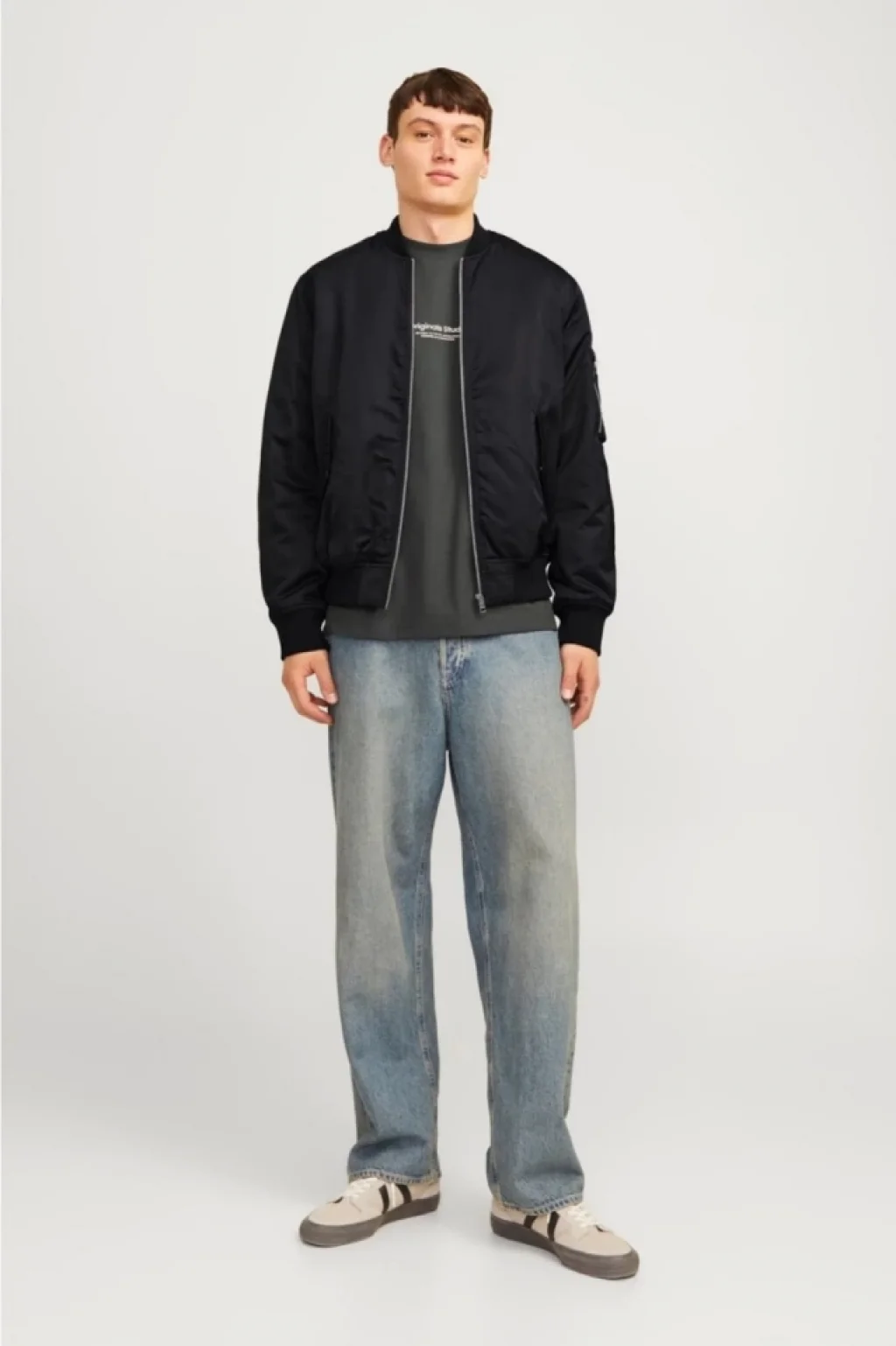 Unisex İçi Astarlı Düz Bomber Ceket - Siyah
